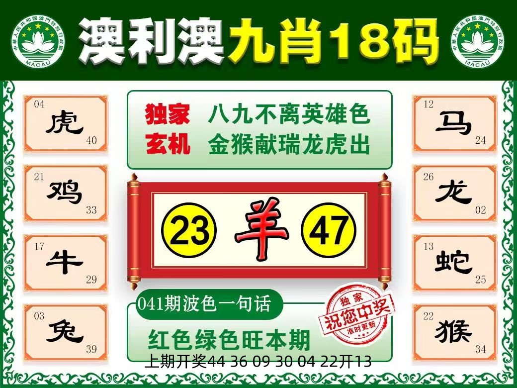 | 041期 | 猴虎龙 | 龙猴 | 猴 |